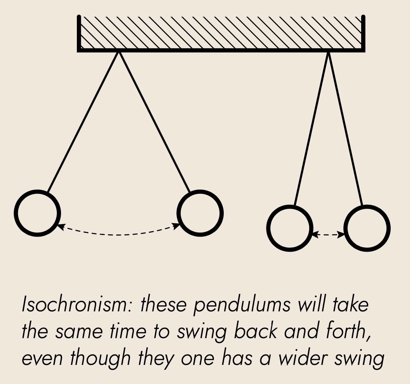 A pendulum timer works because of the principle of isochronism, which means that within a certain swing angle, the period (how long it takes to swing back and forth) is independent of amplitude (how widely it swings). That means you can tell exactly how long a pendulum of a certain length will take to make one swing back and forth, no matter how far somebody pulls it back before letting it go (for any swing under 60° to either size of the center - within 120°). So if you know the variables, then you can set a tape measure so a certain length (say, 26 cm) will make the pendulum swing at a specific time (say, one second).